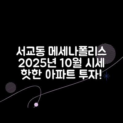 서울시 마포구 서교동 메세나폴리스(주상복합) 아파트의 2025년 10월 시세 전망에 따라 세 가지의 유망 투자 전략을 살펴보겠습니다. 이를 통해 이 지역 부동산 투자에 대한 인사이트를 얻을 수 있습니다.