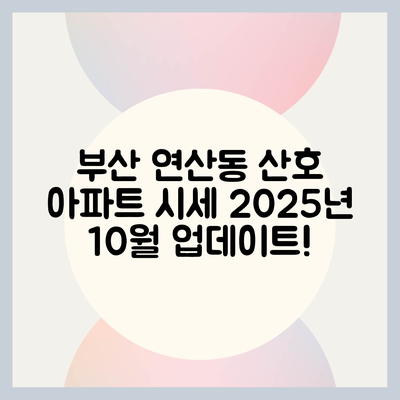 부산시 연제구 연산동 산호 아파트의 시세는 다양한 요소에 따라 영향을 받을 수 있으며, 이를 통해 미래 가치를 예측할 수 있습니다. 2025년 10월 시세 전망을 분석하기 위해 여러 관점에서 접근해 보겠습니다.