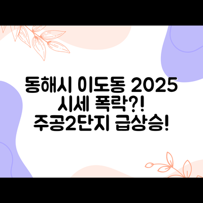여러분, 아파트 매매는 정말 타이밍이 중요하다는 말, 들어보셨죠? 실제로 많은 사람들이 그 시점을 놓쳐서 후회하는 경우가 많아요. 특히 강원도 동해시 이도동의 동해이도주공2단지 아파트는 2025년 10월 시세에 주목해야 할 곳입니다.