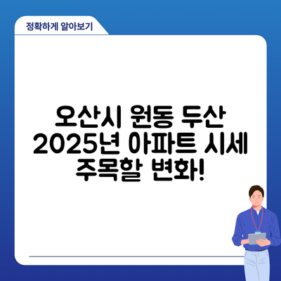 2025년 11월에 예정된 경기도 오산시 원동 원동두산,동아 아파트의 시세를 이해하기 위해 몇 가지 단계로 분석해 보겠습니다.