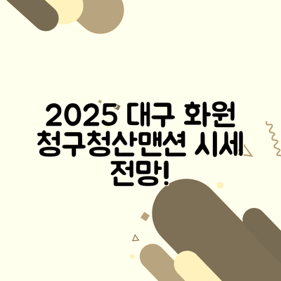 대구시 달성군 화원읍 청구청산맨션 아파트는 2025년 12월 시세 예측에 있어 두 가지 주요 관점으로 접근할 수 있습니다.