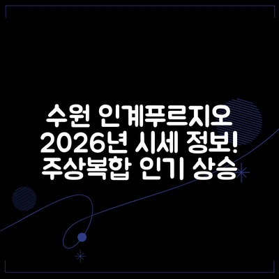 2026년 경기도 수원시 팔달구 인계동 수원인계푸르지오(주상복합) 아파트의 주목할 만한 특징을 아래의 단계별 가이드에 따라 살펴보세요. 이 아파트는 편리한 생활과 투자 가능성이 돋보입니다.